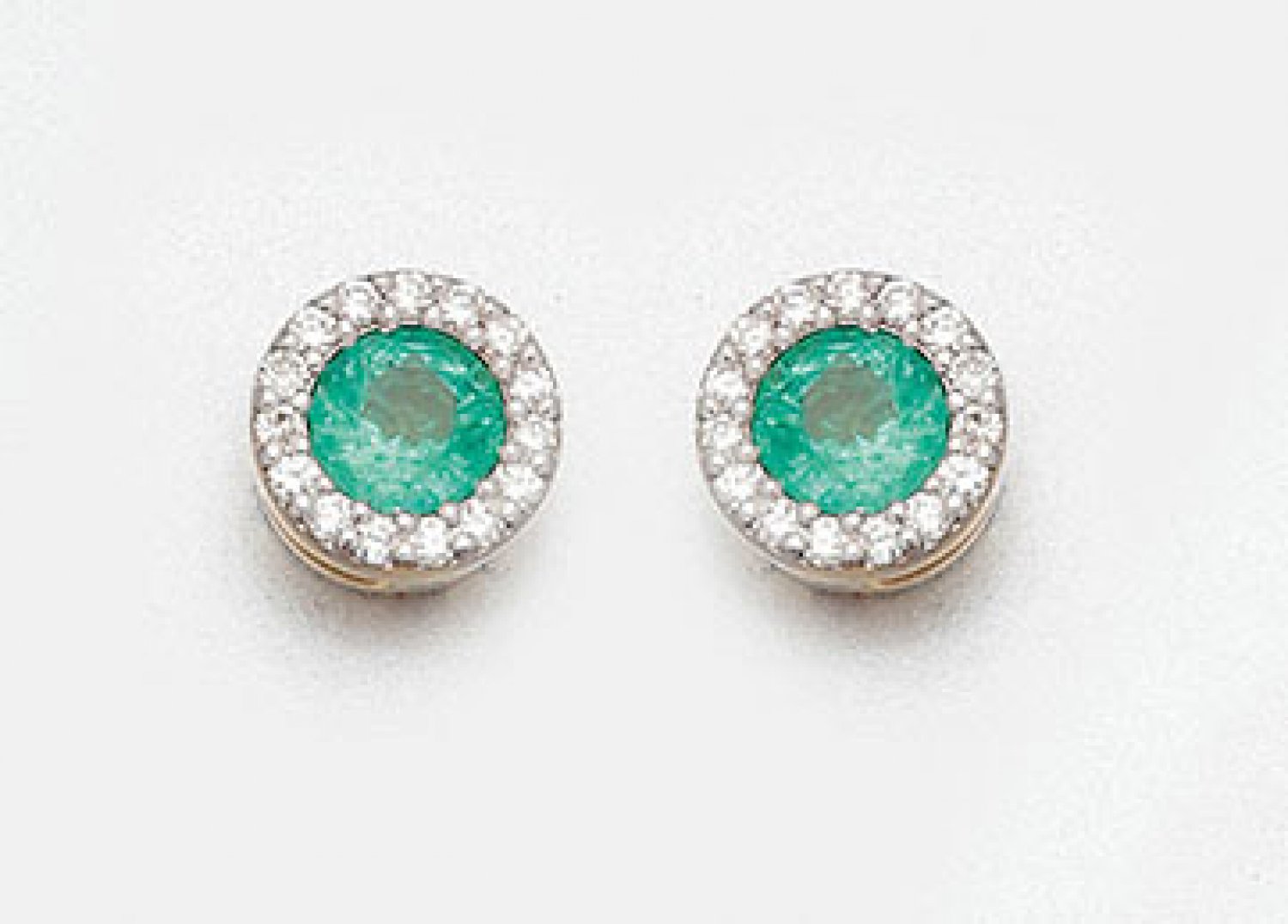 Gelbgold, gest. 585. Zentral besetzt mit zwei leuchtendgrünen Smaragden von zus. ca. 0,50 ct., entouriert von kleinen Diamanten. Ges.-Gew. ca. 2,12 g.
