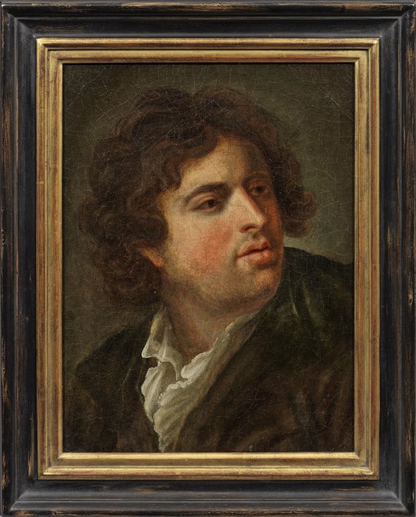 Sehr fein, im duftig-weichzeichnerischen Stil des 18. Jhs. nach dem Leben gemalter Ausdruckskopf eines jungen Mannes, einen Morgenrock tragend, was die Intimität der Darstellung unterstreicht. Anton Raphael Mengs, der Sohn des Sächsischen Hofmalers Ismael Mengs ging 1741 nach Rom und wurde dort zu einer der zentralen Figuren des Kreises deutscher Maler und Gelehrter in Rom. Öl/Lwd., doubliert. Lt. Zuschreibung auf der Original-Rückseite bez. Anton Raphael Mengs. 45 cm x 34,5 cm. Rahmen.