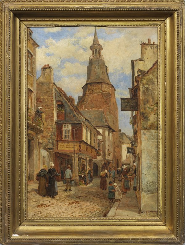 Lichtdurchflutete, stimmungsvolle Ansicht mit reicher, vielfiguriger Staffage. Roberts gilt als einer der bedeutendsten britischen Veduten- und Orientmaler des 19. Jhs.; Ab den 1820er Jahren bereiste er außer England auch Belgien, Frankreich, die Niederlande und Deutschland; 1832/33 und 1838/39 folgten ausgedehnte Studienreisen nach Spanien, Marokko, Ägypten und in den Nahen Osten. Öl/Lwd.; L. u. sign. u. dat. 1834(?). 53 cm x 36 cm. Rahmen.
