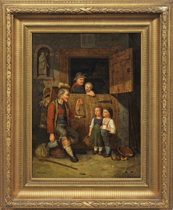 Fein gemaltes, erzählerisches, spätbiedermeierliches Genrebild des bekannten dänischen Künstlers. Der an der Kopenhagener Kunstakademie bei Christian Albrecht Jensen und Johann Ludwig Lund ausgebildete Maler hielt sich 1841 - 1842 zum weiteren Kunststudium in München auf. 1852 wurde er Mitglied und später Professor an der Kopenhagener Akademie. Öl/Lwd.; L. u.sign.; 40 cm x 30,5 cm. Rahmen.