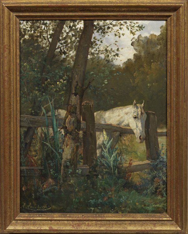Der Landschafts- und Tiermaler, ein Schüler von Jacques Raymond Brascassat and Jules Cogniet, stellte 1859 - 1887 wiederholt auf dem Salon aus. Öl/Lwd.; L. u. sign.; 49,5 cm x 38 cm. Rahmen.