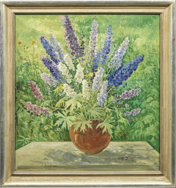 In hellem, pastelltonigem Kolorit gemaltes, harmonisches Werk Umgelters, der sich außer Stillleben vor allem plein air gemalten schwäbischen Landschaften als Motiv widmete. Umgelter stellte u. a. im Württembergischen Kunstverein und in der Staatsgalerie Stuttgart aus. Öl/Lwd.; R. u. sign.; 93 cm x 86 cm. Rahmen.