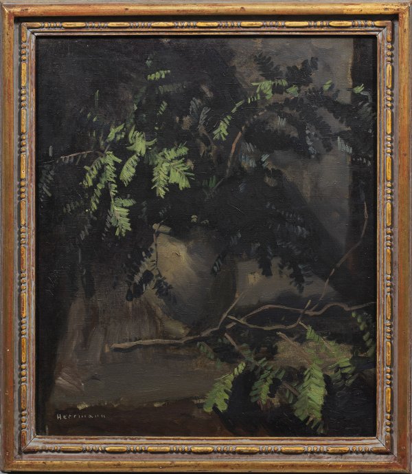 Impressionistisches Stillleben Herrmanns, der in Karlsruhe und München studierte und Meisterschüler von Hugo von Habermann war. Nach einem Studienaufenthalt in Paris 1925/26 kehrte er nach Karlsruhe zurück, wo er die Ausstellungen des Badischen Kunstvereins beschickte. Öl/Lwd.; L. u,. sign.; Verso bez. mit Ortsangabe Karlsruhe. 72 cm x 66,5 Rahmen.