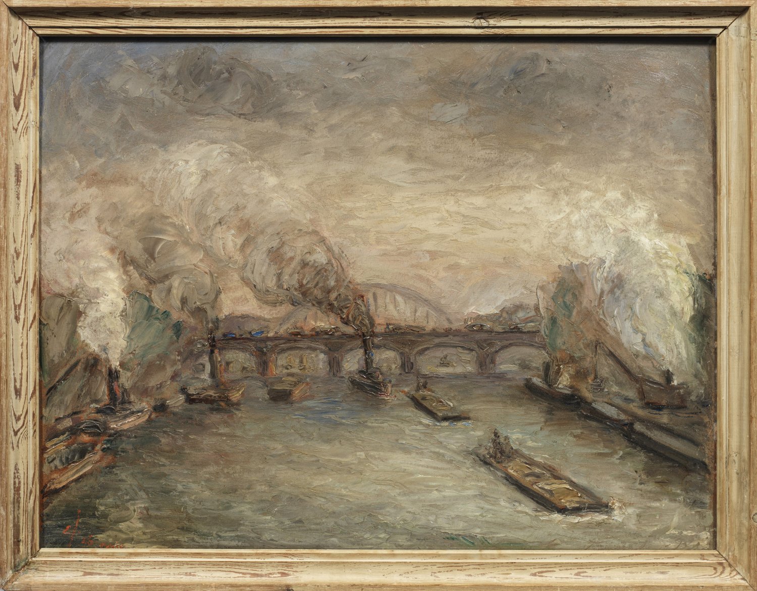 Mit breitem, schnellem Duktus und weich-pastosem Farbauftrag in tonigem Kolorit gemalte, frühe Stadtlandschaft Johansens, der ab 1926 mehrfach nach Paris reiste und vom Impressionismus zum Expressionismus fand. Johansen studierte an der Kunstakademie in Kopenhagen bei Julius Paulsen. 1913 debütierte er in Charlottenborg und stellte bis 1964 vielfach aus; 1931 erhielt er den Serdin-Hansen-Preis. Öl/mit Karton kaschierte Holztafel. L. u. sign. u. dat. (19)26 mit Ortsangabe Paris. 48 cm x 63 cm. Rahmen.