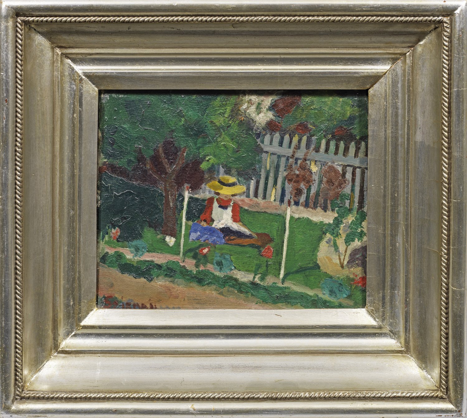 Mit schnellem, breitem Duktus gemalte Darstellung der Moderne, die augenfällige Parallelen zu seinem deutschen Zeitgenossen August Macke und dem Künstler des "Blauen Reiter" zeigt. Szirmai, der in Budapest, München und Paris studierte, malte neben Porträts u. a. Landschaften. Öl/Lwd.; L. u. sign.; 21 cm x 26 cm. Rahmen.