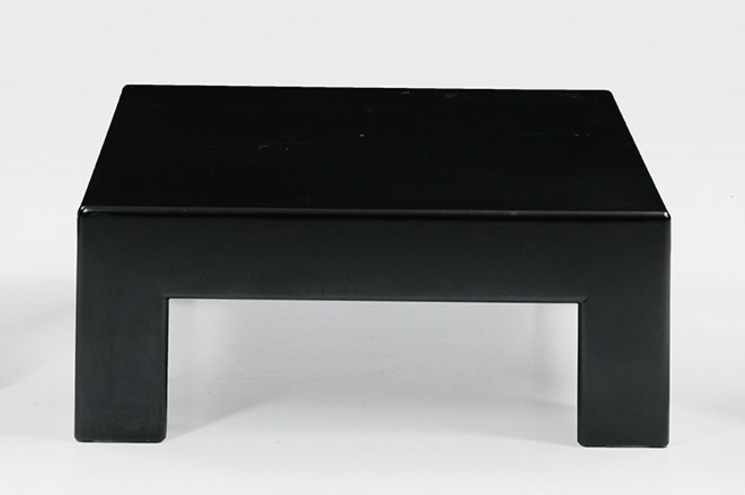 Flächendeckend mattschwarzer Fond. Gerader Korpus mit breiten, abgekanteten Beinen, in quadratische Deckplatte übergehend. Unbez. H. 35 cm. 90 cm x 90 cm.