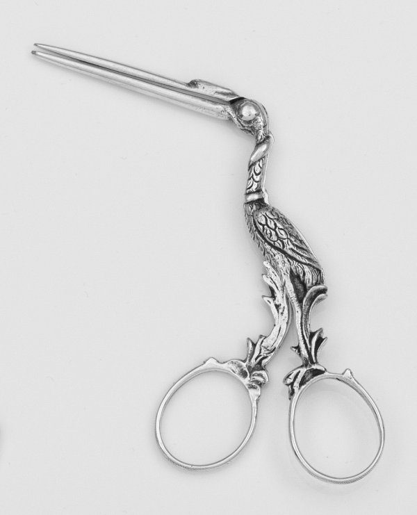 An Sterling silver umbilical cord scissor. Standard and city mark.