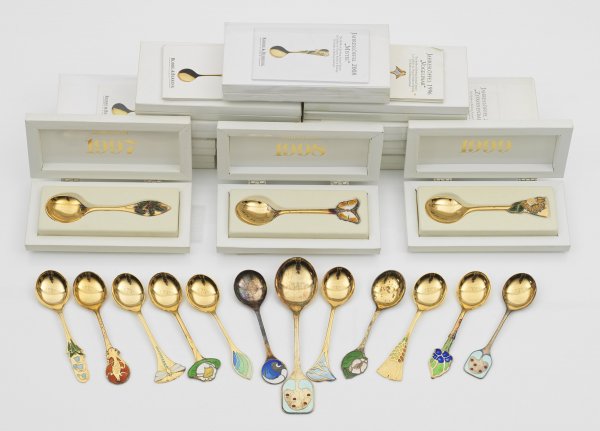 26 gilt year spoons by Robbe & Berking. Standard mark 925, maker´s mark.