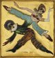 Painting with enamel depicting a dancing Venetian carnival pair, in 21 k gold.