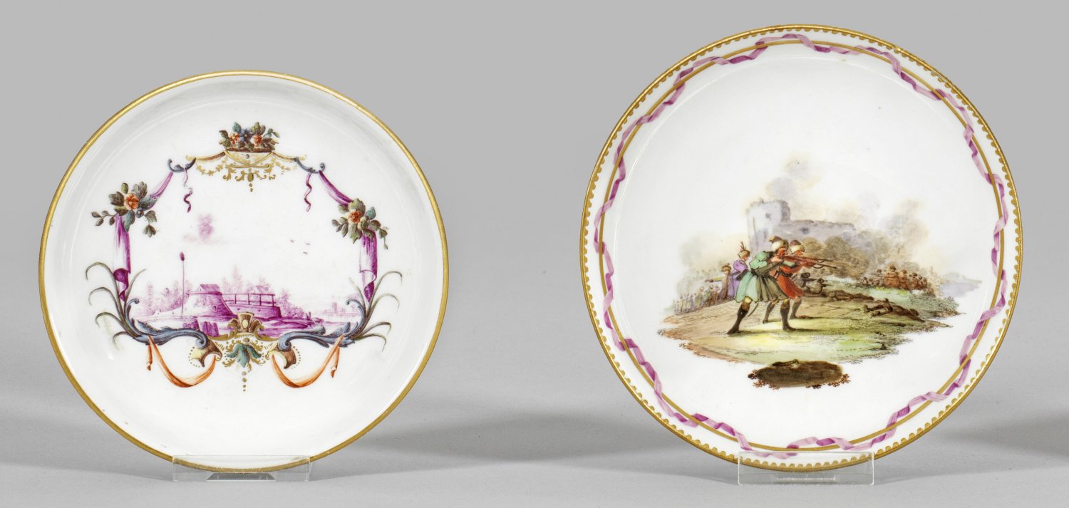 Lot 2814: Zwei Unterschalen mit Landschafts- und Bataillenszene