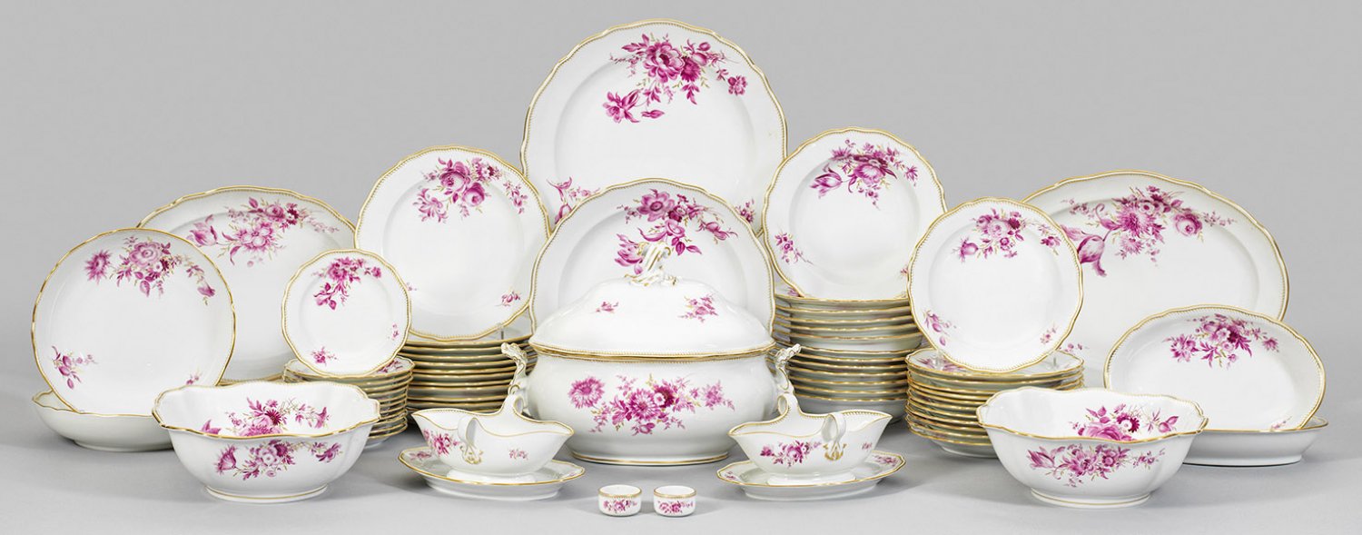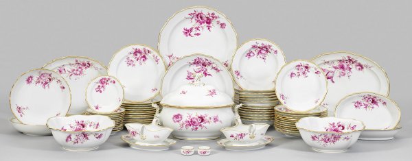 Lot 2892: Speiseservice mit Dekor "Deutsche Blume" in Purpur-Malerei