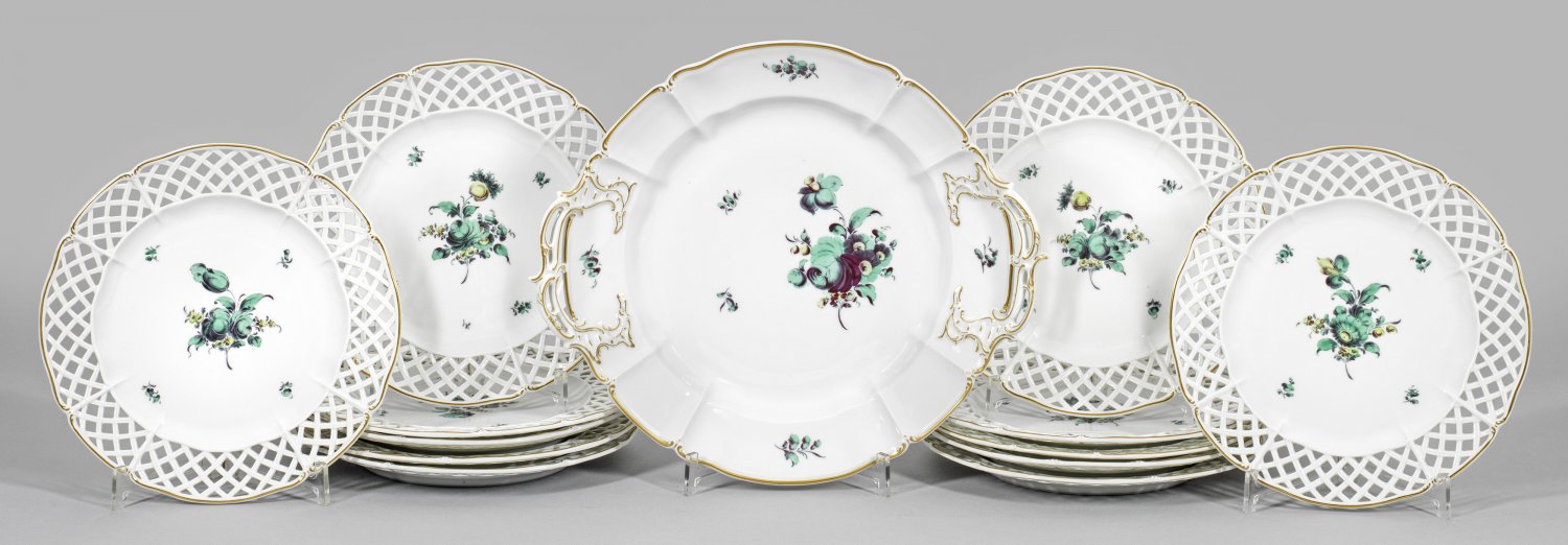Lot 2924: Zwölf große Durchbruchteller und eine Kuchenplatte