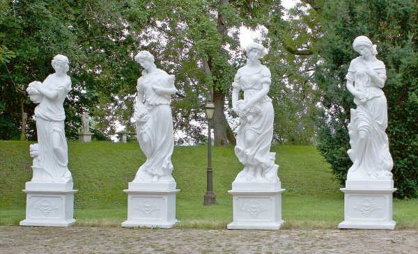 Gruppe von vier großen Parkskulpturen als Personifikationen der vier Jahreszeiten