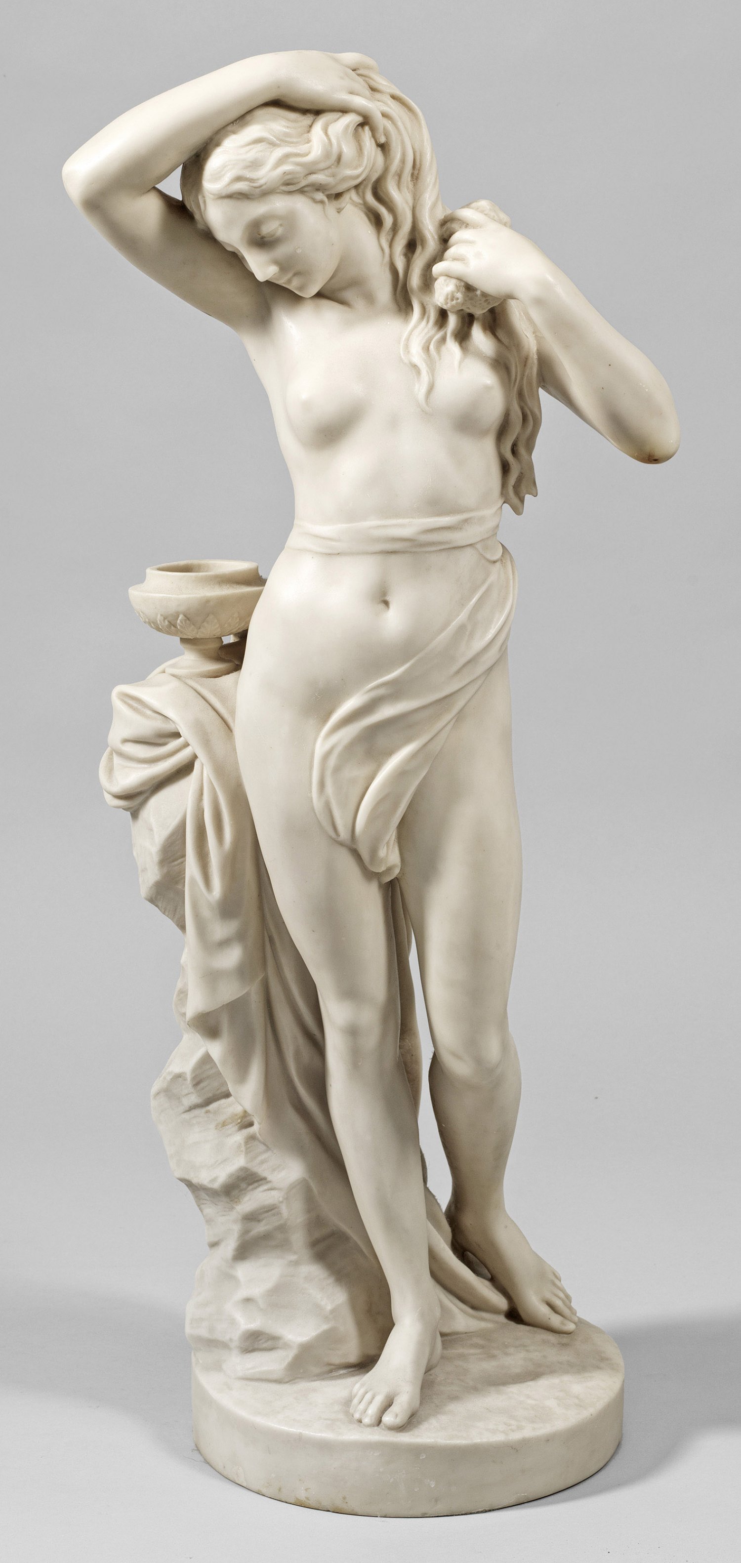 Alabaster- bzw. Marmor-Kunstguss. Bez. "FALCONET FECIT", eingelassene Plakette mit Firmenmarke der ARA Kunst, Dr. Fritz Albrecht, Altrandsberg, Betitelung, Nummerierung 125/980 u. Dat. 1985. H. 85 cm.