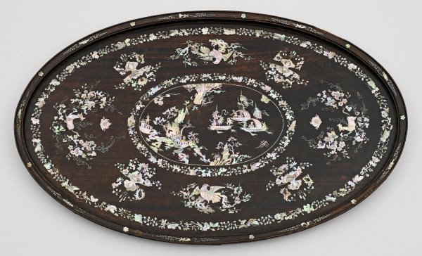 Lot 3123: Großes Tablett mit Perlmutt-Chinoireserien