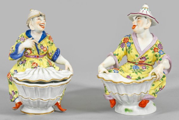 Lot 800: Paar figürliche Gewürzschalen mit Chinesen