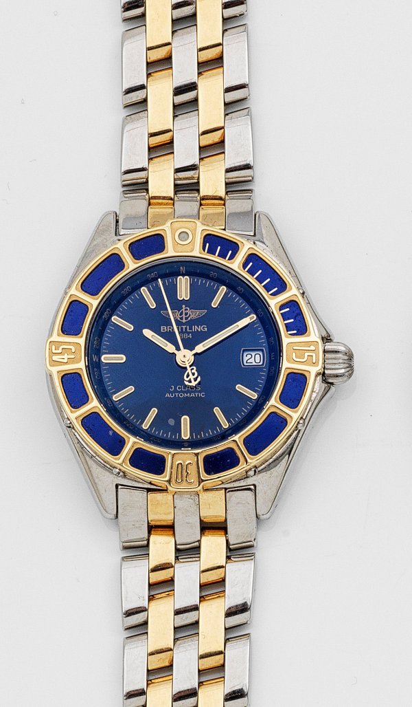 Stahl, teilw. 18 ct. vergoldet. Rundes Uhrengehäuse mit einseitig drehbarer Lünette, gravierter Minutenskala sowie Leuchtkapsel. Saphirglas. Powder blue-Zifferblatt mit Stabindexen und Zeigern mit Tritiumauflage, Datumsfenster. Gliederarmband mit doppelter Faltschließe. Quarzwerk. Nr. 4660 Ref.-Nr. D31003/1.0703. Herstellerzeichen.
