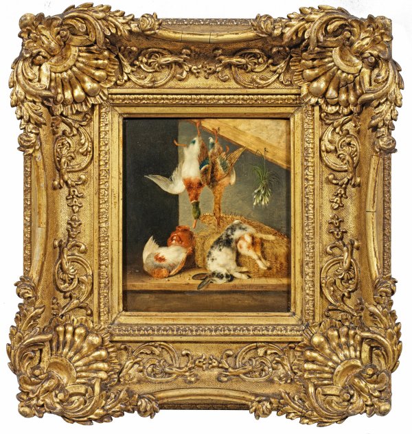 Feinmalerisch ausgeführtes, motiv- und stiltypisches Kabinettbild des auf Wildstillleben spezialisierten Künstlers, der 1807-1825 mehrfach in der Royal Academy ausstellte. Öl/Eichenholztafel. An der Plattenkante sign. u. dat. 1823. Verso auf dem Rest eines alten Etiketts bez. "A. C. Bromhead from (...)" and "(...) WITH DEAD GAME (...)". 22,8 cm x 19,8 cm. Rahmen.
