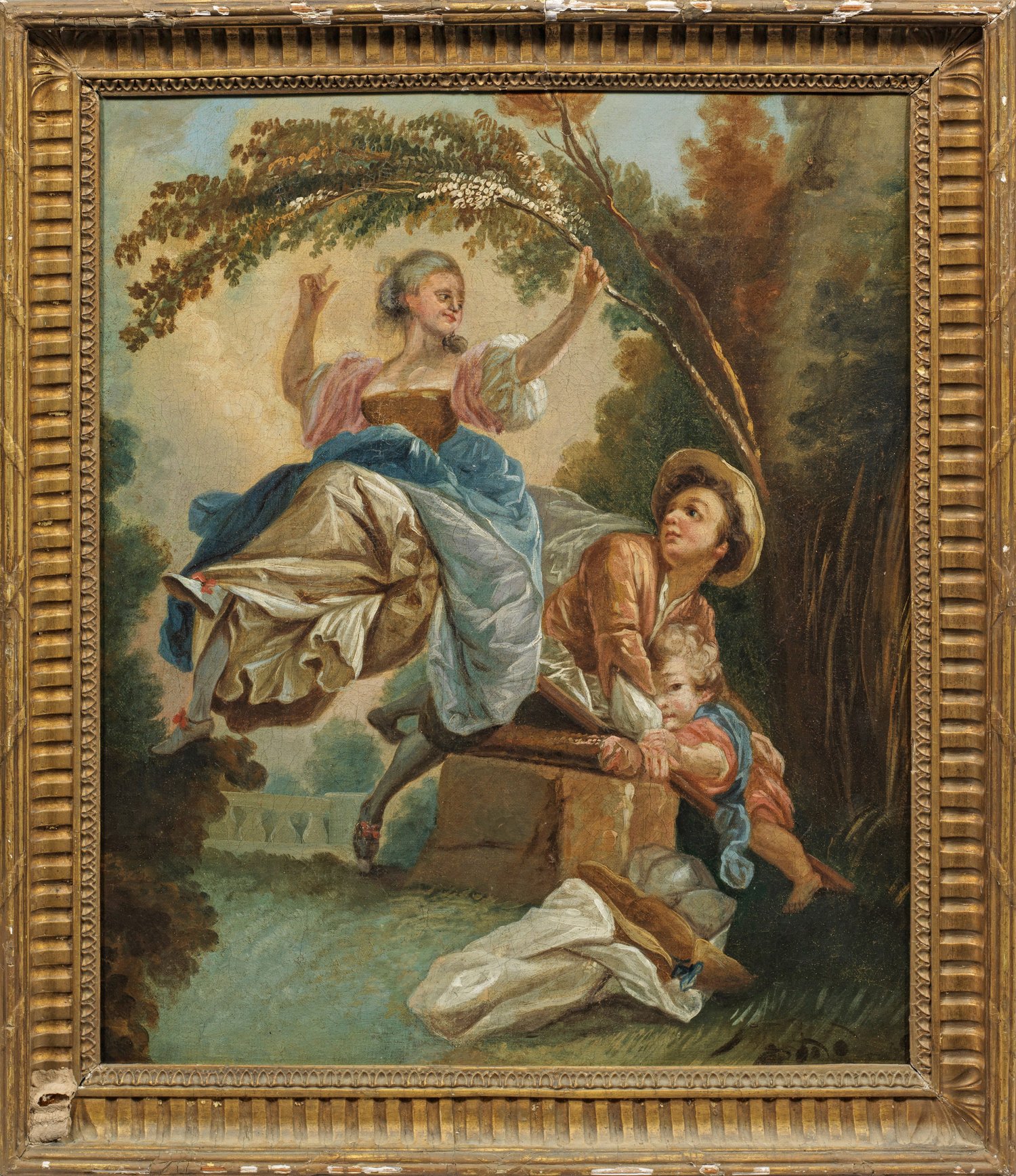 French painter, active in 18th/19th C., after Jean-Honoré Fragonards "The See-Saw". Oil on canvas. Restored/relined.