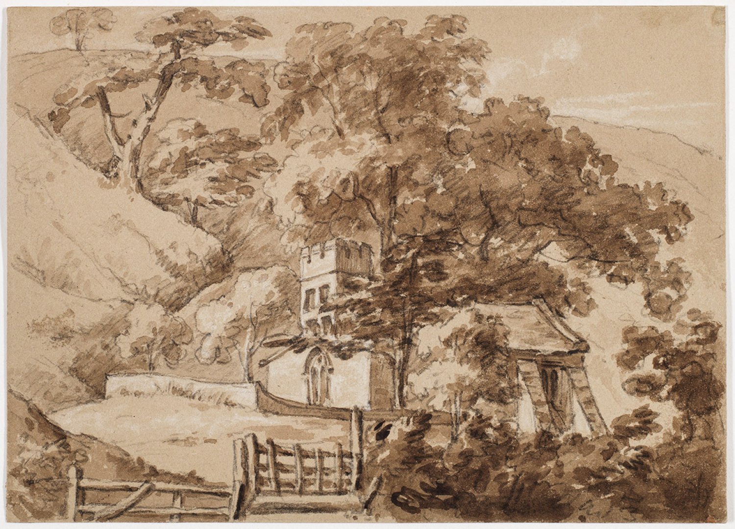 Lavierte Sepia-Zeichnung mit Weißhöhungen über Bleistift/Papier. Verso sign.; Blatt 13,2 cm x 18,3 cm.