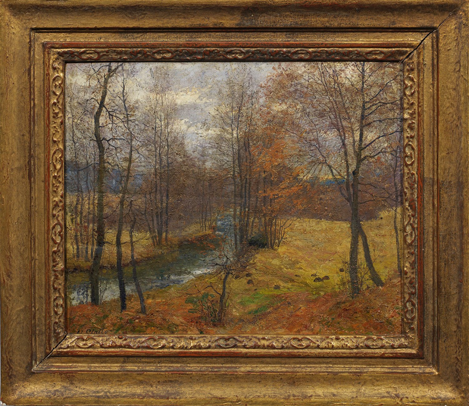 Impressionistische Landschaft Glattes, der u. a. in Paris studierte und mit Vorliebe in der Umgebung von München malte. Öl/Lwd.; L. u. sign.; Verso Ligatur-Monogr. u. Betitelung. 36 cm x 45 cm. Rahmen.