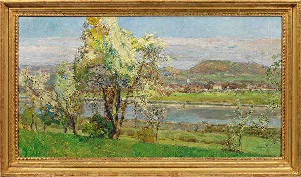 Spätimpressionistisches Werk des tschechischen Malers, der zunächst bei dem Landschafts- und Architekturmaler Ferdinand Engelmüller lernte. Für kurze Zeit ging er nach München, kehrte dann aber nach Prag zurück, wo er bei Emanuel Krescenc Liska an der Kunstgewerbeschule und bei Rudolf von Ottenfeld an der Akademie der Bildenden Künste studierte. Seteliks Oeuvre umfasst hauptsächlich großformatige Ansichten von Alt-Prag. Öl/Lwd.; R. u. sign.; 65 cm x 120 cm. Rahmen.