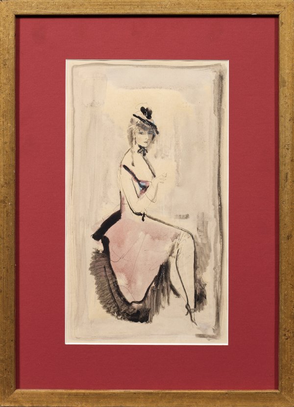 Im Dreiviertelprofil dargestelltes Milieuportrait, das ein für Rudakows Oeuvre charakteristisches Blatt darstellt. Der russische Grafiker, Zeichner und Illustrator studierte an der Akademie in St. Petersburg. Mischtechnik/Papier. Ger. Läsuren. Darstellung 34 cm x 19,7 cm (Passepartoutausschnitt). Blatt ca. 39,6 cm x 27,2 cm. Rahmen.