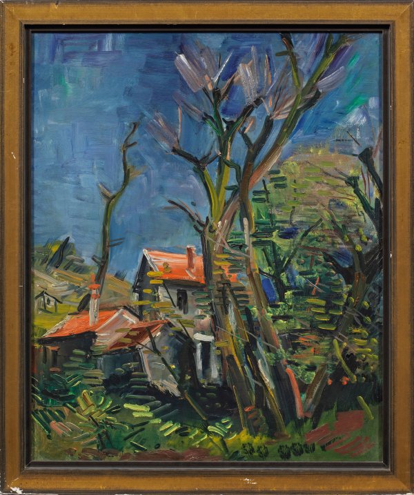 Jacobi gehört zu den wiederzuentdeckenden, bedeutenden Malern der sog. verschollenen Generation. 1926-1928 lebte Jacobi für zwei Jahre in Paris, wo ihn Maurice de Vlaminck beeinflusste. 1928 eröffnete er die Malschule "Annot" in Berlin und wurde Mitglied der Berliner Secession. Nach ersten Ausstellungserfolgen emigrierte Jacobi 1933 aus politischen Gründen in die USA. Erst 1967 kehrte er nach Deutschland zurück. Öl/Lwd.; Verso Nachlass-Stempel. 73 cm x 60 cm. Rahmen.