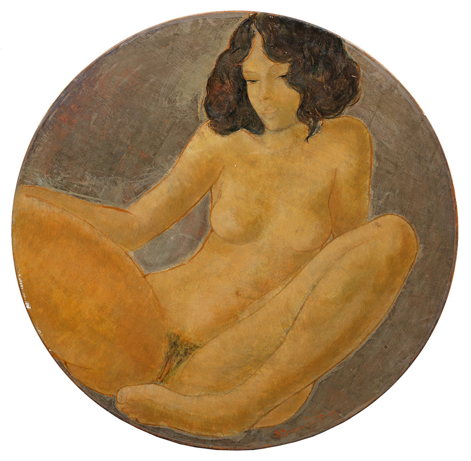 Tondo-Komposition Bonnefoits, der im Pariser Künstlerviertel Montmartre sein Atelier hat und seit 1965 zu den bekanntesten Aktmalern der Gegenwart gehört. Öl/Holztafel. R. u. sign. u. dat. (19)74. D. 70 cm.