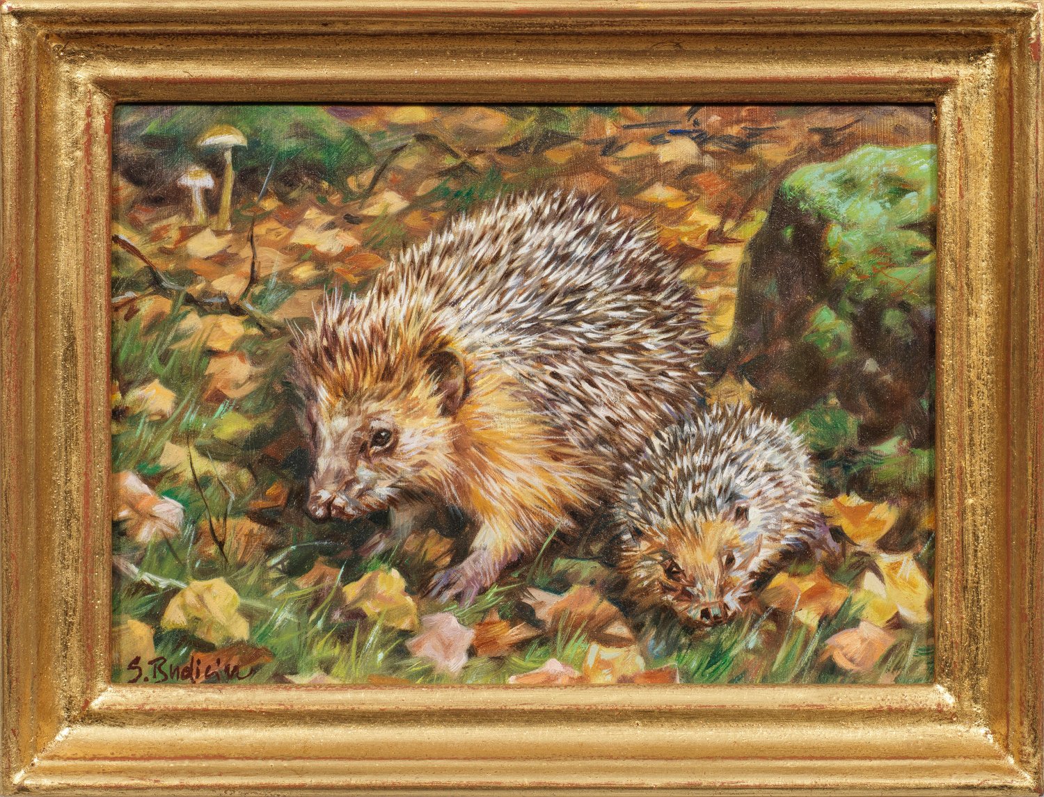 In der impressionistischen Erfassung des Lichts und der lebendigen Darstellung virtuos gemaltes Werk Budicins, der ab 1975 vielfach ausstellte und sich besonders der Tiermalerei widmete. Öl/Holztafel. R. u. sign.; 13 cm x 18 cm. Rahmen.