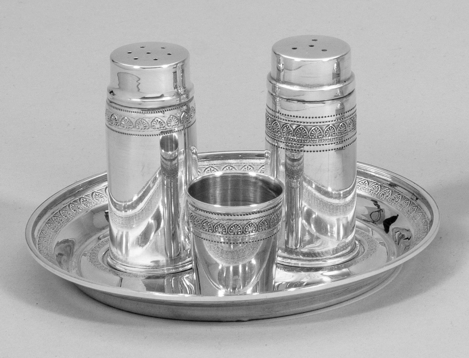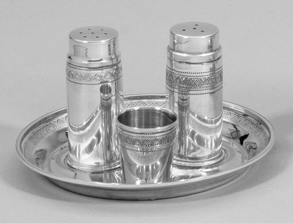 Lot 2807: Salz- und Pfefferstreuer mit Tablett und kleinem Becher