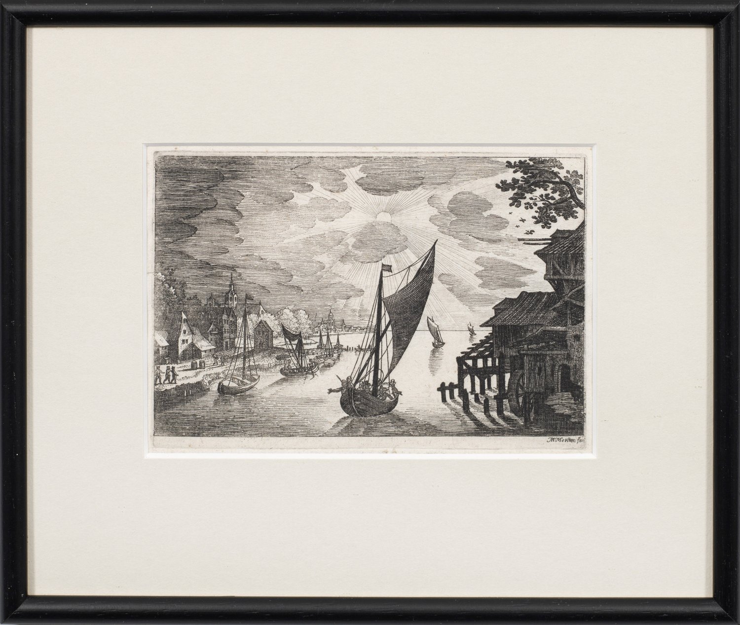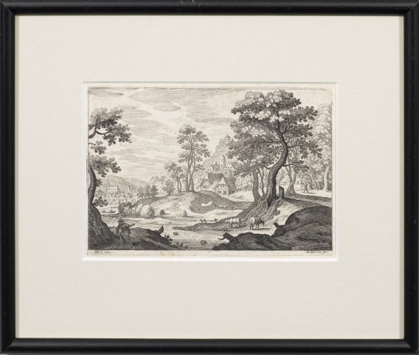 Kupferstiche/Papier, um 1620. Jeweils unterhalb typographisch bez., tlw. dat. und ortsbez., 1 Blatt nach Hans Bol "HBol inv.". Seltene Ansichten aus dem Frühwerk des berühmten Kupferstechers. Plattenmaß 10,3 bzw. 11,5 cm x 15 cm. Rahmen.