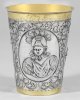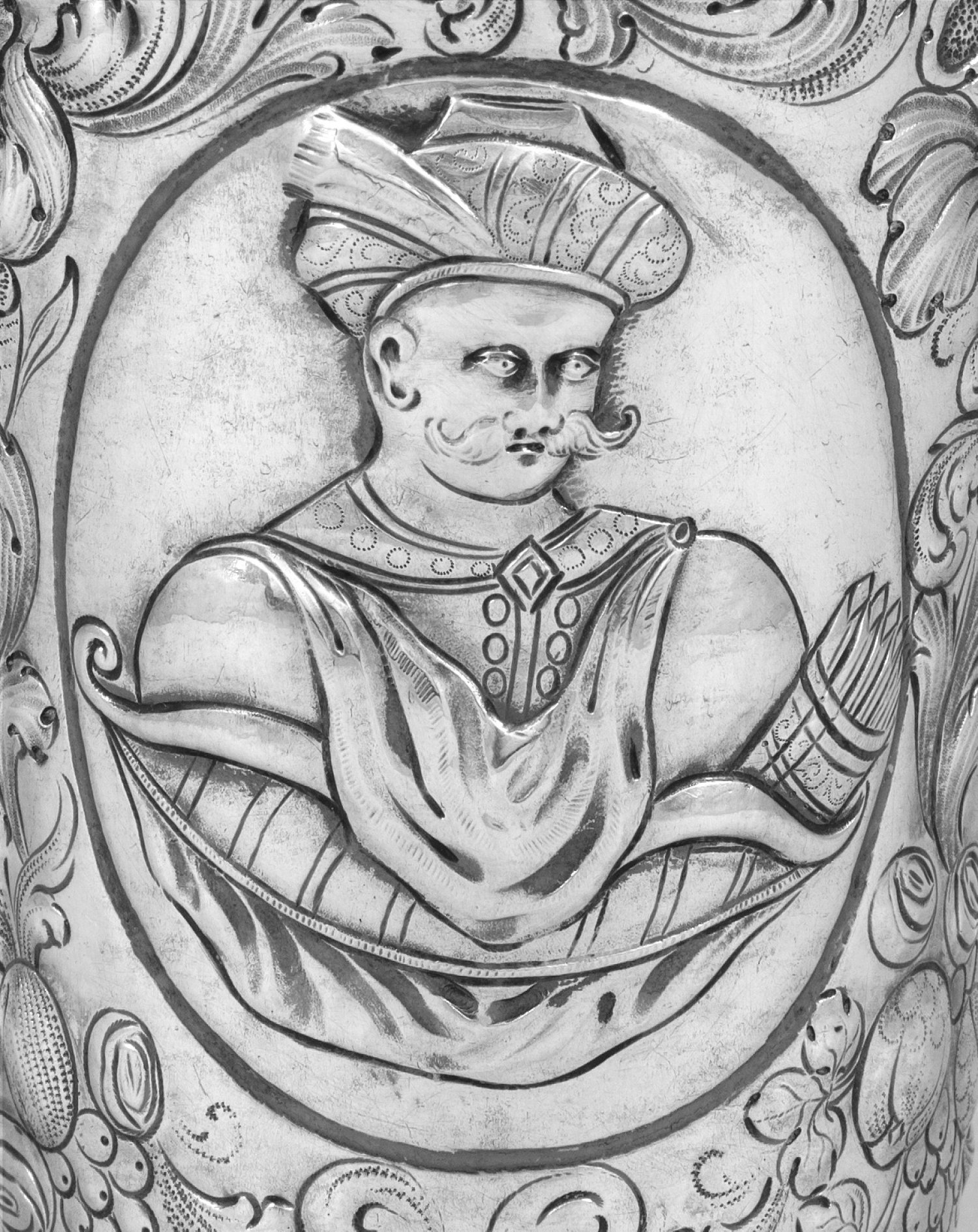 A large Swedish Baroque parcel-gilt silver beaker among others with portrait of an Ottoman, referring to the Turkish Wars by Arnold von der Hagen (master since 1695). Gilt inside. Assay and master's mark.