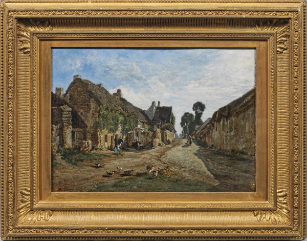 Impressiv aufgefasste, subtil die Lichtstimmungen und -effekte einfangende Landschaft. Veron, ein Schüler von Paul Delaroche, wandte sich der Landschaftsmalerei zu und gehörte dem Kreis der Schule von Barbizon an. Beeinflusst wurde Veron durch Charles-François Daubigny, Théodore Rousseau und Jules Dupré, mit Vorliebe malte er zwischen dem Wald von Fontainebleau und Auvers-sur-Oise. Seit 1848 stellte Veron mehr als dreißig Jahre im Salon aus und nahm mit seinen Werken einen bedeutenden Platz unter den Künstlern seiner Zeit ein. Werke Verons befinden sich in mehreren französischen Museen und im Smithsonian American Art Museum. Öl/Lwd.; L. u. sign. u. dat. 1855. 35 cm x 46,5 cm. Rahmen.