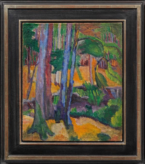 Flächig komponiertes, expressionistisches Werk Kothers, der zu den bedeutenden, wiederentdeckten Künstlern der sog. "verschollenen Generation" gehört. Prägend wirkten auf ihn die "Brücke"-Maler Max Pechstein, Erich Heckel und Ernst Ludwig Kirchner sowie sein Freund und Schwager Otto Mueller. Zu den illustren Sammlern und befreundeten Künstlern, die früh Werke Kothers erwarben, gehörten Gerhart Hauptmann, Walter Rathenau, Curt Felixmüller und Käthe Kollwitz. 1912/13 hatte Kother erste erfolgreiche Einzel- und Gemeinschaftsausstellungen mit Pechstein und Beckmann. 1914 ging Kother von Dresden in die Kunstmetropole Berlin - wo ihn Herwarth Walden 1916 zusammen mit Pechstein und Lyonel Feininger in seiner "Sturm"-Galerie zeigte. Ab 1918 reihen sich die Erfolge: 1919 beteiligte er sich mit der "Novembergruppe" an der Großen Berliner Kunstausstellung, 1920 an einer Ausstellung der "Freien Sezession"; 1921 widmete ihm die Galerie Moeller eine von Max Osborn gerühmte Einzelausstellung; 1922 erhielt Kother durch Max Liebermann den Ehrenpreis der Preußischen Akademie der Künste. Zur Zäsur wird die Zeit des Nationalsozialismus - als Expressionist gehörte auch er zu den verfemten "entarteten" Künstlern. Öl/Lwd., doubliert. Ca. 75 cm x 63 cm. Rahmen.