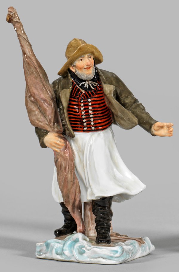 A rare porcelain figure of a Mönchsgut skipper in a traditional costume of Rügen. Crossed swords mark.