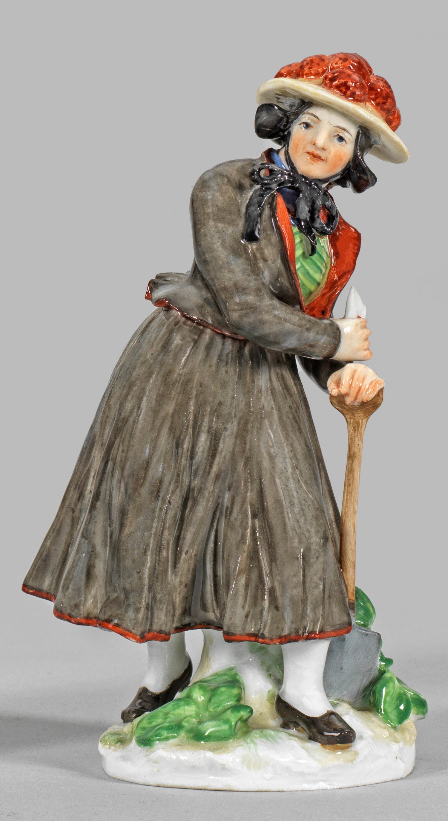 Aus einer Reihe von 25 Trachtenfiguren des Bildhauers Hugo Spielers, dessen Modelle die Meissener Manufaktur zwischen 1897 und 1898 erwarb. Spieler studierte an der Akademie und Kunstgewerbeschule in München und wurde als Professor an die Dresdner Kunstgewerbeschule berufen.