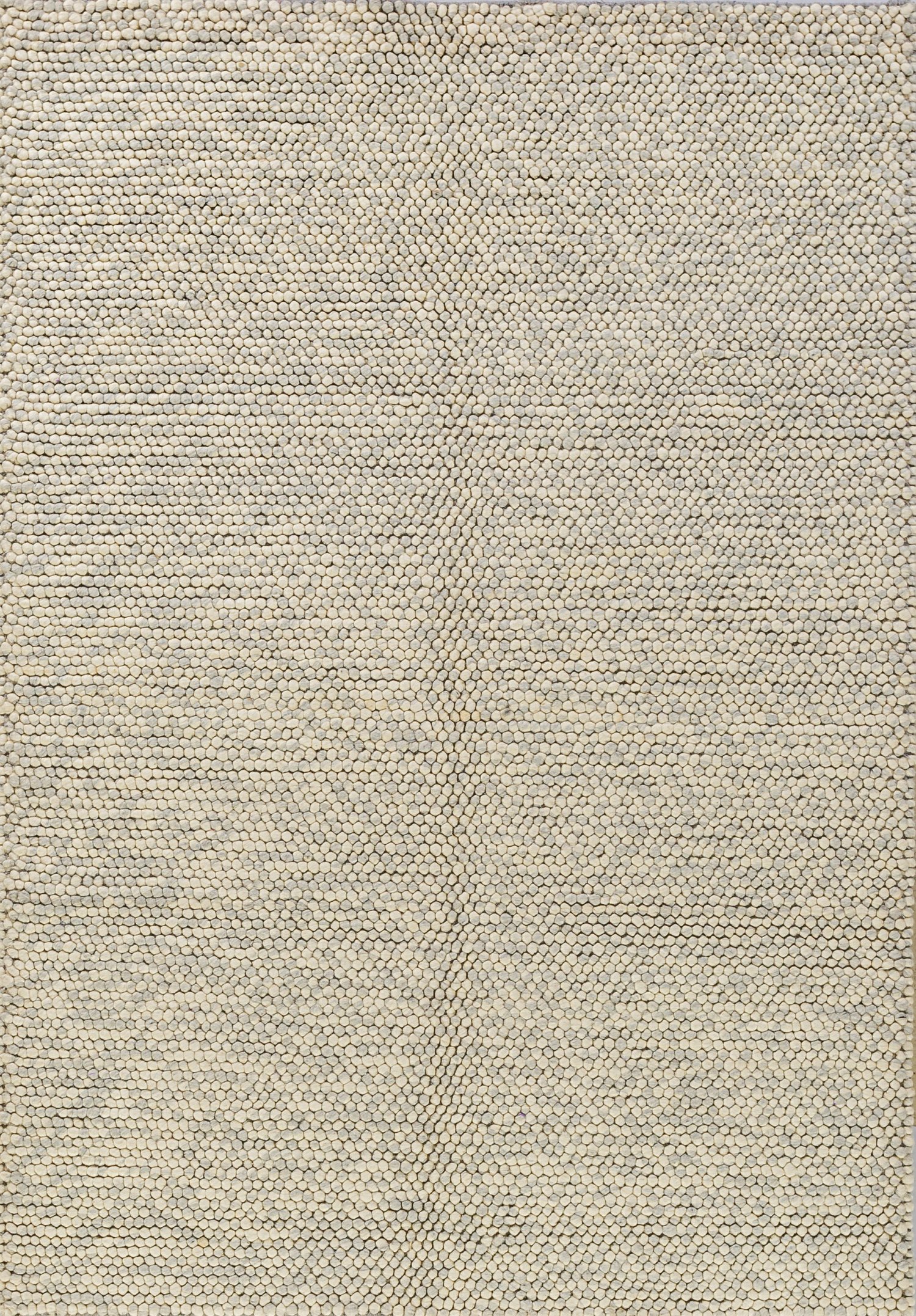 Indien. Wolle auf Baumwolle. Cremefarbener, grau-blau changierender Fond mit flächendeckender Noppenstruktur. 140 cm x 200 cm.