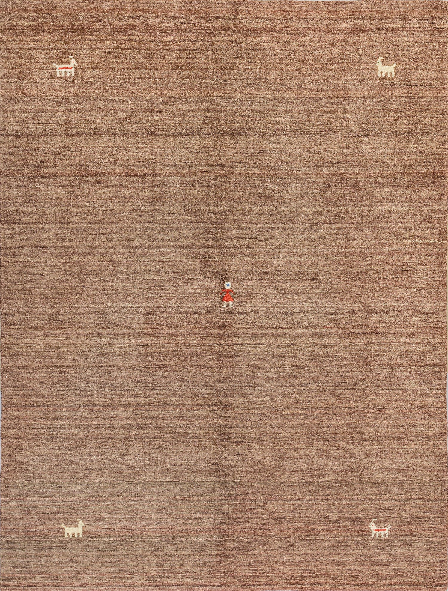 Persien. Wolle auf Wolle. Auf braun-beige abraschiertem Fond zentrale kleine Figur sowie stilisierte Tiere in den Ecken. 201 cm x 155 cm.