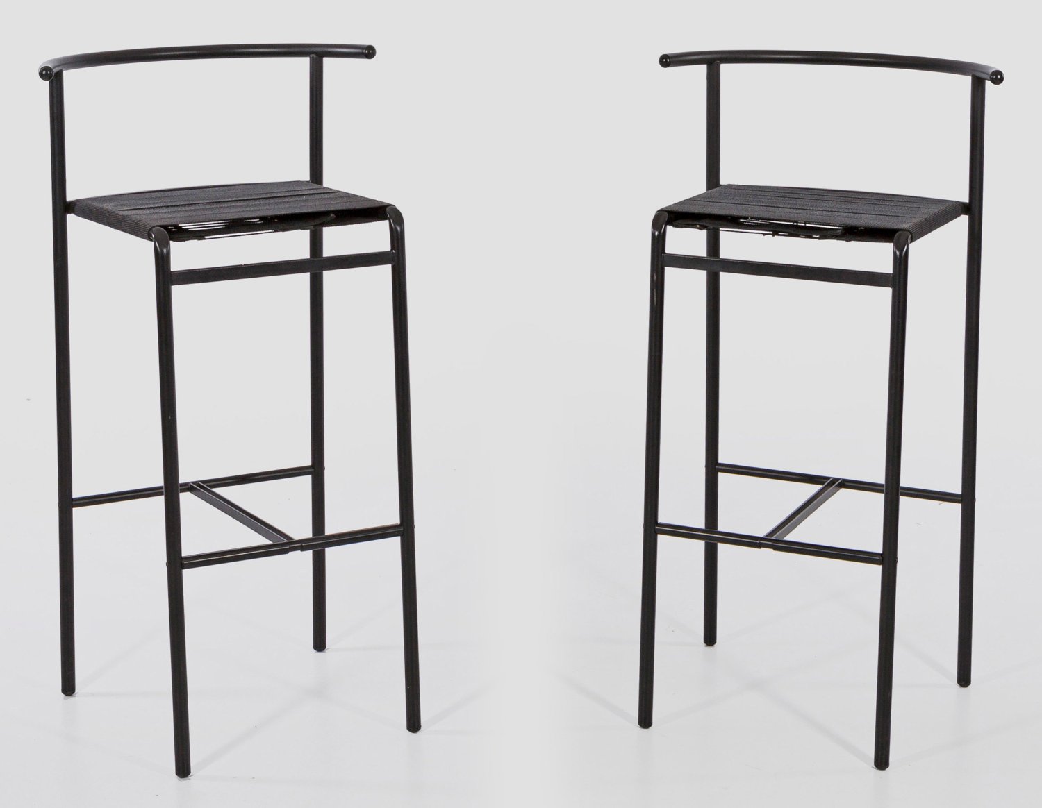 A pair of Italian black metal bar stools designed by Philippe Starck.