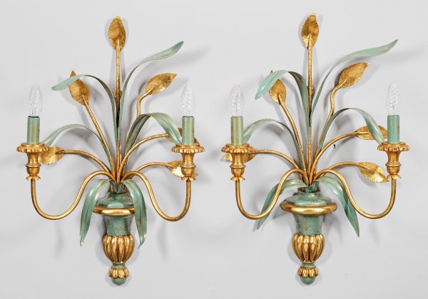Lot 2645: Dekorativer Wandspiegel und Paar große Wandlampen
