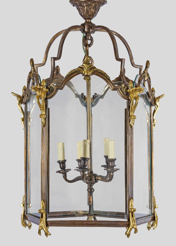 A large French partly gilt bronze ceiling lamp.