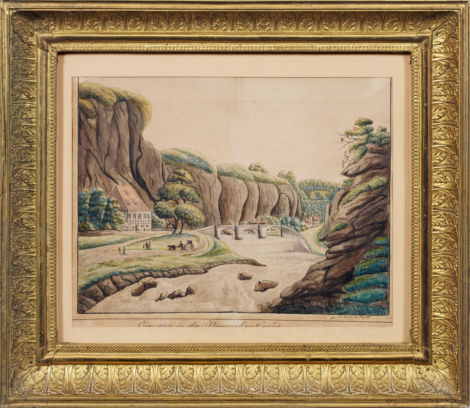 Watercolour on paper. Signed, titled and dated 1832 with location Merseburg. Original frame.