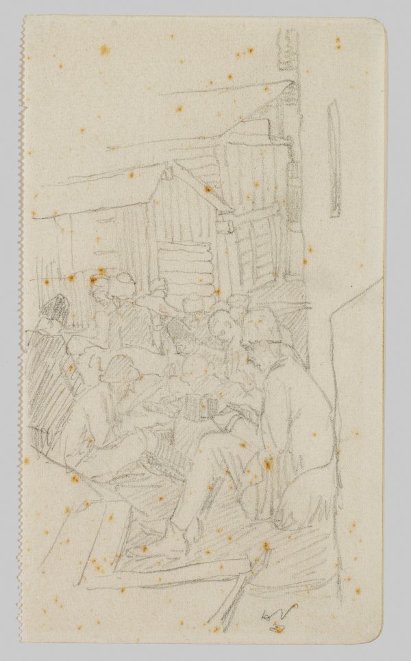 Reiseskizze aus dem Kriegstagebuch aus dem Ersten Weltkrieg in den Karpaten. Bleistift/Papier. R. u. monogr. mit Worpsweder Wappenschild. Auf dem Passepartout betitelt. Ger. stockfleckig. 16,2 cm x 9,3 cm.