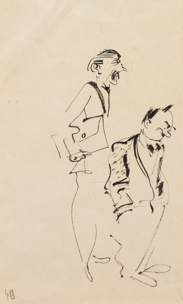 Expressiv-realistische Blätter Schwimmers. Dieser lehrte bis 1933 an der Kunstgewerbeschule in Leipzig, 1937 wurden in der Aktion "Entartete Kunst" mindestens sieben Bilder vernichtet. 1946 wurde Schwimmer Professor an der Staatl. Akademie für Graphische Künste und Buchgewerbe in Leipzig; seit 1951 leitete er die Grafik-Abteilung der Dresdener Hochschule für Bildende Künste. Feder u. Tuschpinsel/Papier. 8,5 cm-20,8 cm x 9 cm-12,5 cm (Passepartoutausschnitt). Rahmen.