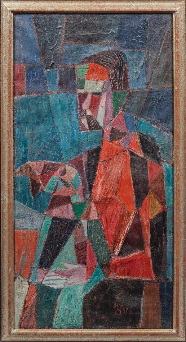Frühes Werk Obers, der bei Josef Hillerbrand, Fritz Nagel und Slavi Soucek in München und Salzburg studierte. Als Gründungsmitglied der "Salzburger Gruppe" gehörte er seit 1951 zu den wichtigen Künstlerpersönlichkeiten Salzburgs. Öl/Karton. R. u. monogr. u. dat. (19)53. Verso sign., betitelt u. dat. (19)53; Etikett "Deutscher Künstlerbund (/) Sonderschau 'Das frühe Bild - Malerei und Plastik'", Haus der Kunst, München, 1960. Craquelee. 112 cm x 58 cm. Rahmen.
