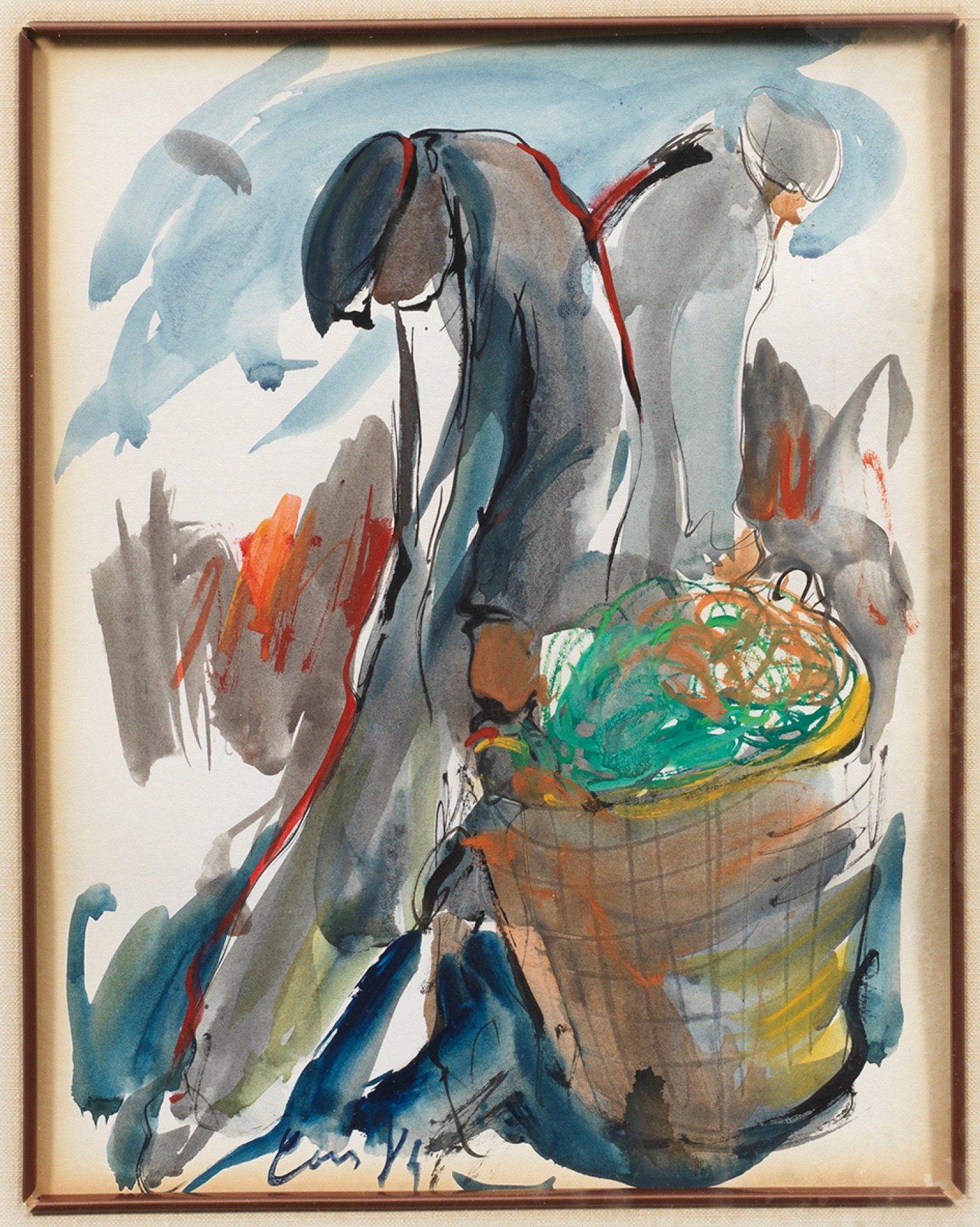 Contemporary painter active late 20th C. Two sheets. Watercolour and gouache on paper. Indistinctly signed and dated (19)84. Light stainting.