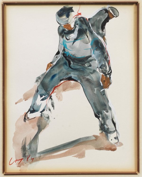 Zwei Blätter. Neoexpressionistische Darstellungen im Stil der "Jungen Wilden". Aquarell u. Gouache/Papier. L. u. undeutl. sign. u. dat. (19)84. Lichtrandig. Ca. 29,5 cm x 23,5 cm (Passepartoutausschnitt). Rahmen.