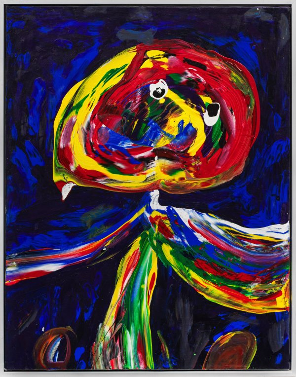 Neoexpressionistisch gemalte Figur in der Tradition der "CoBrA"-Gruppe und Karel Appel. Enenkel studierte 1981-1990 an der Kunstakademie Münster, 1989/90 als Meisterschüler von Professor Hermann-Josef Kuhna. Öl oder Acryl/Lwd.; Verso sign. u. dat. 2002. Ger. Farbaplatzungen. 99,5 cm x 80 cm Rahmen.
