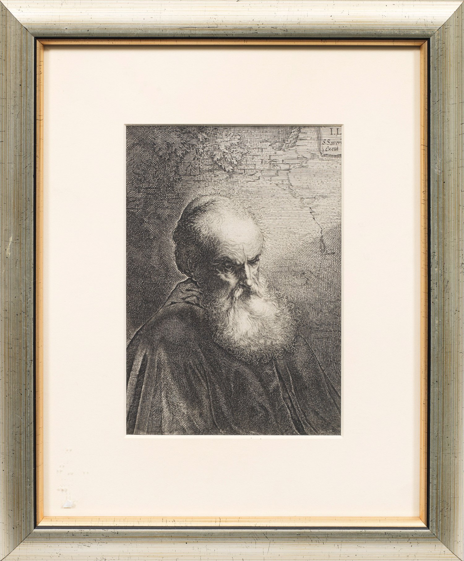 Radierung/Papier, um 1640. In der Platte monogr., mit Verlegervermerk. Erschienen bei Salomon Savery (Amsterdam 1594 - 1678). Verso mit verschiedenen, handschriftlichen Bezeichnungen sowie einem Sammlungshinweis. Hollstein 78 (XI). Beschnitten bis knapp vor den Plattenrand. Platte 18,6 cm x 14 cm. Blatt 18,9 cm x 14,3 cm. Rahmen.